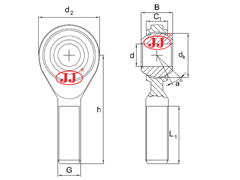 | D tolerance | B00.12 | dk | C1max | d2max | G2A | h | L1min | A°≈ | Static Load Ratings kN/Static | Radial clearance (mm) | |||