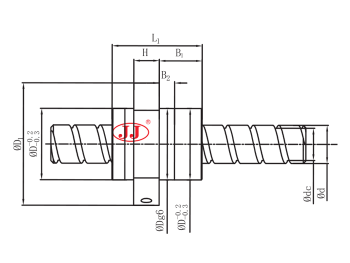 公称型号 丝杆轴外径d 导程l 钢球中心直径dp 丝杆轴沟槽直径dc 负载圈数 列×圈 基本额定载荷 刚性K N/μm 螺母尺寸 润滑孔A 丝杠轴的惯性力矩/kg・cm²/mm 螺母质量/kg 轴质量kg/km 最大容许转速min⁻¹